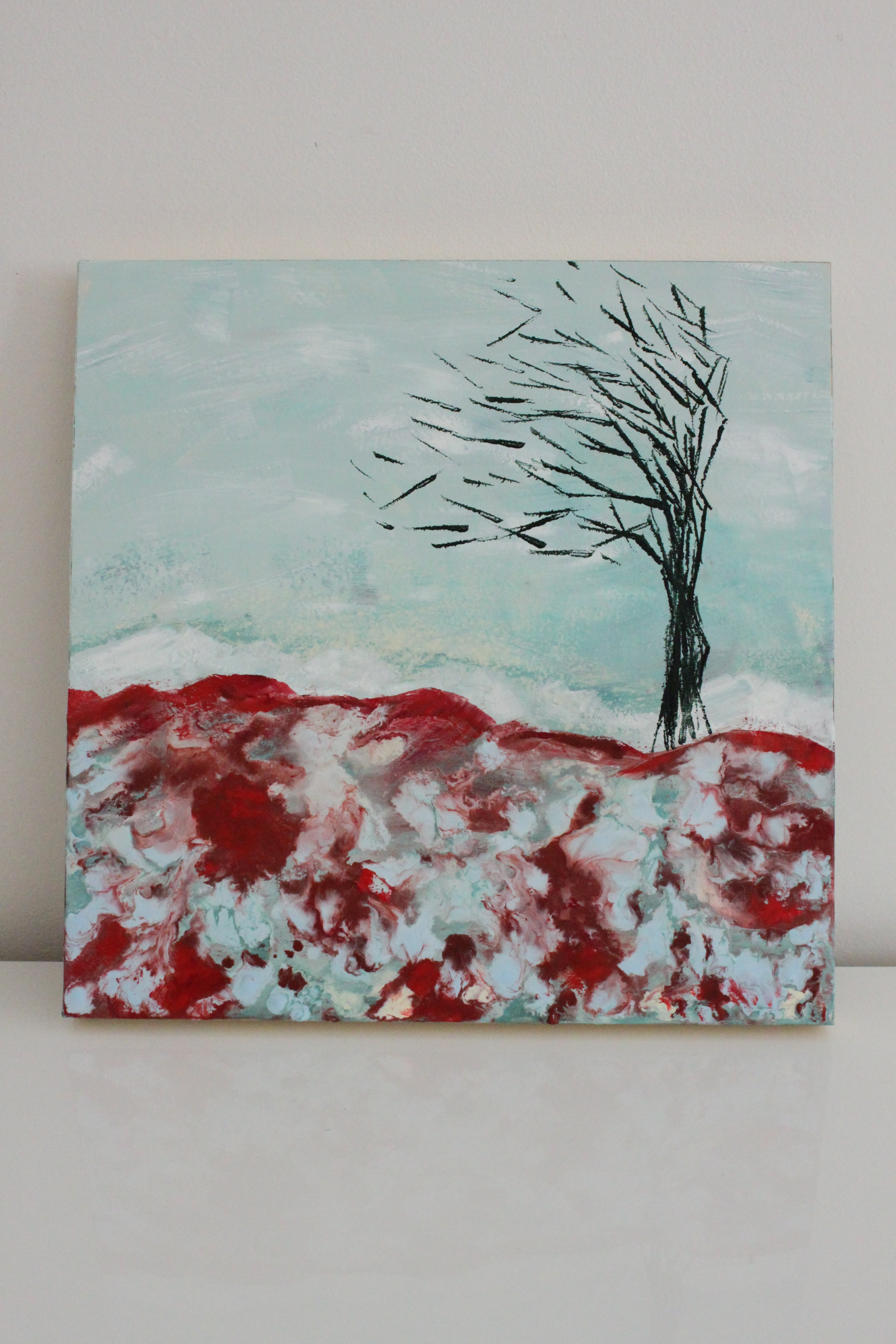 Having so much fun with my new “Beneath” series in oil and encaustics. Couple of burns on my arm as I get used to the handling all the hot equipment… But well worth it! I think this piece was inspired by all the Christmas cards and decorations that have suddenly appeared every where…they seem to have gotten a hold of my subconscious.