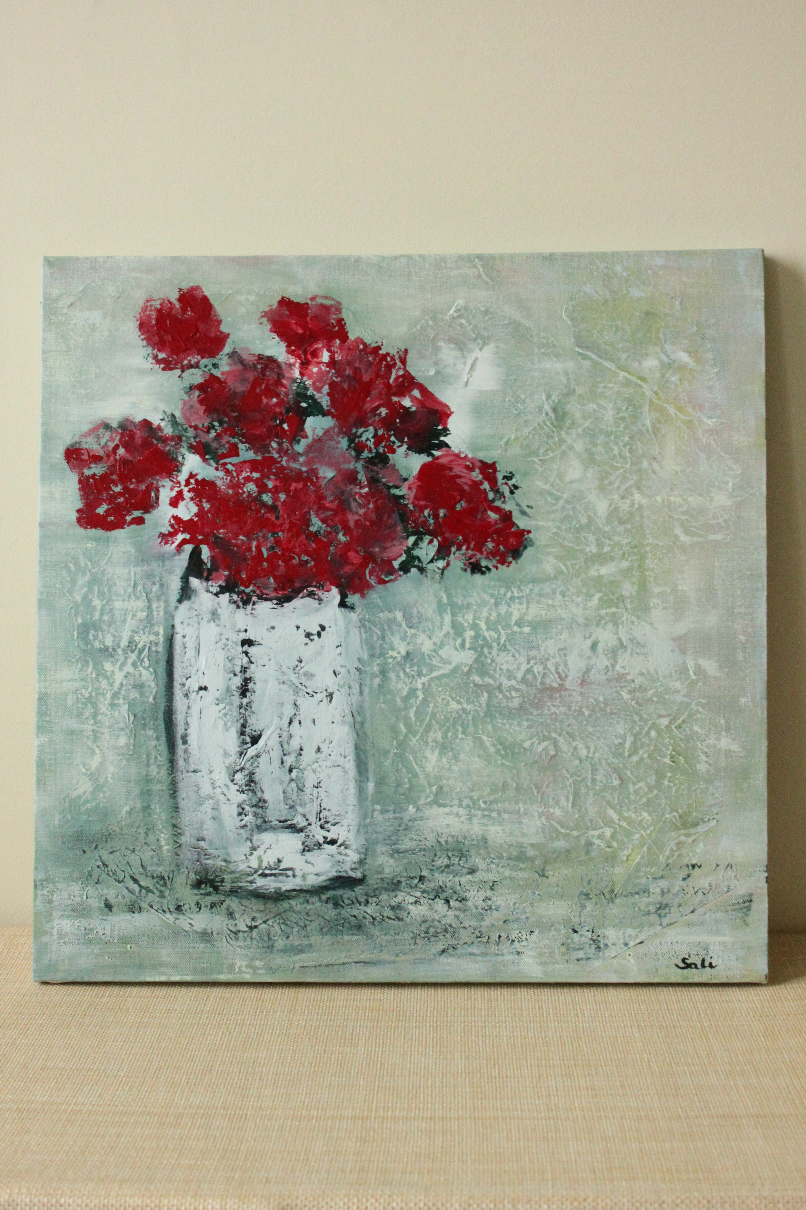 Nearer Still Published on December 18, 2010March 6, 2011 by SaliSwallaArt Acrylic & Rice paper on canvas 18 x 18 inches (Private Collection London) I Love painting on Japanese Unryu paper. In this case I randomly placed pieces on the canvas like a collage and just let the texture do as it wished. Share this: Click to share on Facebook (Opens in new window) Facebook Click to share on X (Opens in new window) X Like Loading... Related